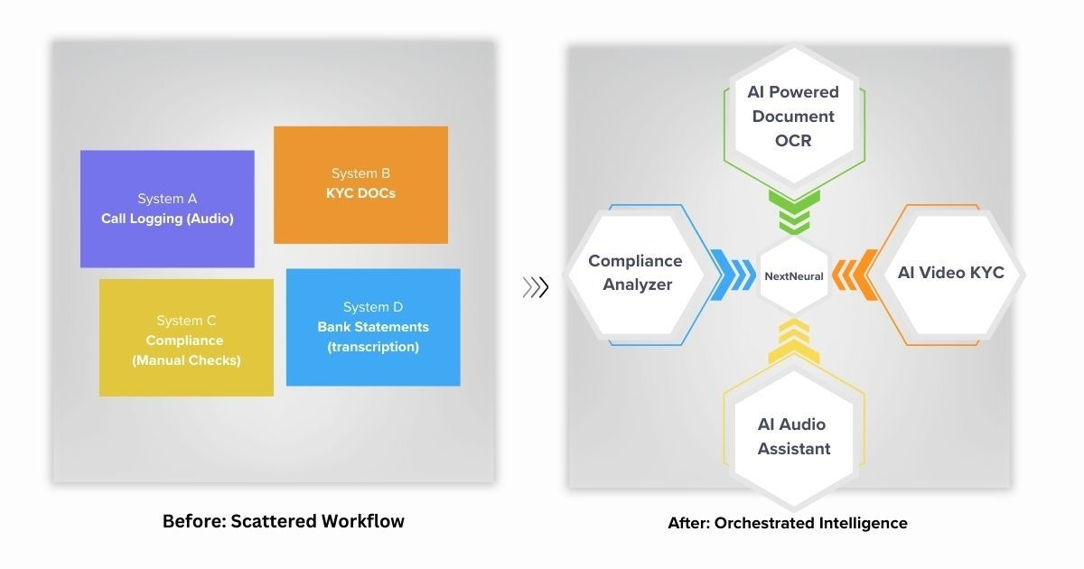 Every BFSI team knows this story all too well: A customer calls asking about a loan, and the audio from that conversation quietly gets stored in System A, waiting for someone to notice it. Their KYC documents, meanwhile, are pushed into a queue in System B, where another team picks them up hours later. Across the floor, compliance officers sift through the latest RBI circulars in System C, trying to interpret what exactly changed and whom it impacts. And in yet another silo, System D - someone is manually transcribing scanned bank statements so that the underwriting team can move forward.