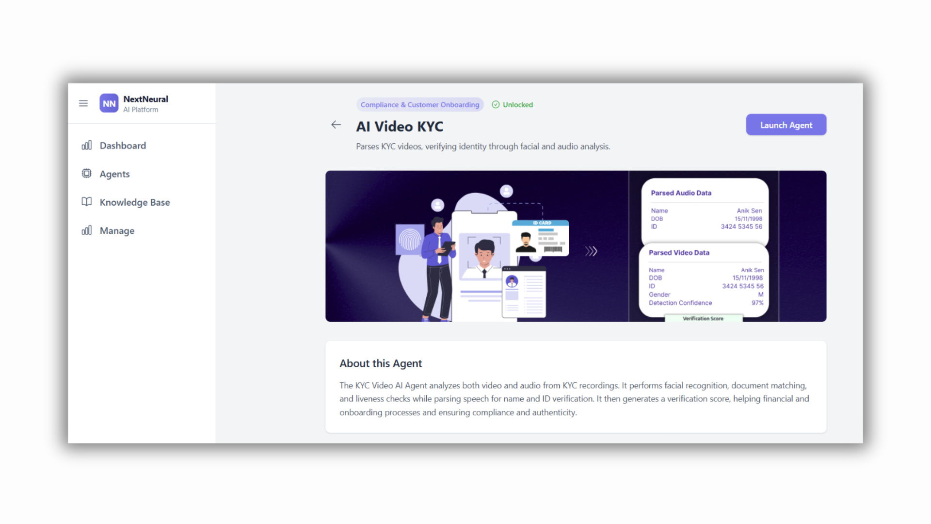 NextNeural is an API-first control layer designed to collapse fragmented BFSI workflows into a single, intelligent system. It comes with pre-built AI agents that plug directly into your existing stack, without forcing you to recreate the underlying infrastructure that so many teams waste effort on. Today, we’re spotlighting four of these agents, engineered specifically to solve high-friction operational bottlenecks across financial institutions.