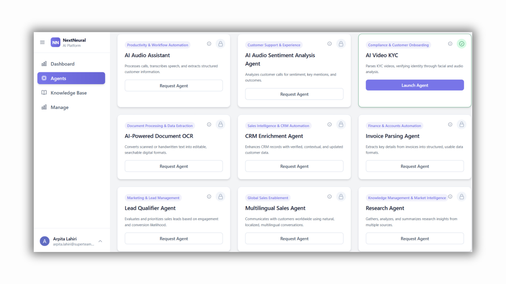 NextNeural is what happens when you take prebuilt production-ready AI agents and wrap them in the infrastructure you’d build anyway but standardized, secured, and accessible through clean APIs.
